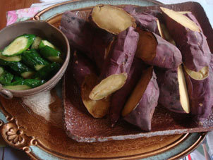 午後のクラスの講座は、文子さんが引率して県民の森の散策に行ってきました。風が強い日でしたが、紅葉がとても素晴らしかったそうです。 夜のクラスでは、S野さんが元気市場から焼き芋を買ってきてくださいました。講座の後、奥山勉さんの作品展の前祝を兼ねてのティータイム。 初物の焼き芋を食べながら、東を向いて「わっはっはっは」と笑いました。(初物を食べる時に、東を向いて笑うと、寿命が75日延びるのだそうです)。 次の頁へ 前の頁へ トップ頁へ
