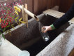 客室から大浴場へ行く廊下から雪の中庭が見え、その反対側に、保健所から許可を得ての「飲用泉」があります。