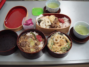 のんべにのんべに(飲べえではありません。いつもいつもの長井語です)食べ物の日記でゴメンナサイ・・・今日のお昼は、文子さんの手づくり弁当でした。