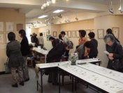 桜展を待ちわびていたファンの皆さん方が大勢ギャラリーを訪れ、触れれば散るような・・・と言い伝えられている太田洋愛先生の原画50点や、百桜図の巻物などに見入っておられました。 会場正面には、墨で描かれた桜の古木や、生前先生が愛用されていた画材、シベリア抑留時代に作られたスプーン、貴重な写真などが展示されています。