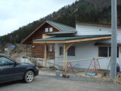 高台の駐車場から下の駐車場への階段が、積雪や凍結で危険でしたので、文子さんのアイデアで、清野工務店さんにお願いして、階段部分に屋根を作っていただきました。雪や雨の日の階段の昇り降りが楽になると思います。