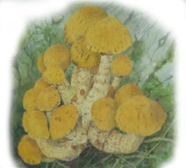 この絵が描きあがった時、長井中学の同級生の植松秀之氏(ネパールヒマラヤのランタンリ初登頂。中国の新青峰18峰初登頂などの時の登山隊長として活躍)が、「このオオワライタケを塩漬けにすると食べられるそうなので、一度食べてみたい」と言っていたことを思い出しました。いつも頓知の聞いたユーモアで周りを笑わせる植松氏、はたしてオオワライタケを食べやったべが(たべられたでしょうか)????