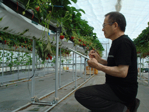2度あることは3度、とはいかないので、頑張って19日号の絵を描いています。モデルは山形県農業総合研究センター・園芸試験場で育成中の、夏に収穫できるイチゴ。その名もサマーティアラという新品種を描かせていただいています。