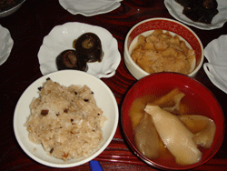 西川町大井沢にある文子さんの親友から、ご実家の山へ案内していただきました。「なんにも無いけれど、お昼ご飯をどうぞ」のお言葉に甘えて「いただきまーす」。何にも無いどころか、凄いご馳走でした。香茸の炊き込みご飯に天然の平茸のお汁、それにブナハリタケが一丼!超豪華版の昼食でした。