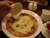 右の写真は、仙台市定禅寺通りのナプレさんのピザです。先日、友人宅でチーズに蜂蜜をかけてご馳走になったら美味しかった話をしたら、なんと、ナプレさんのデザートにすでに「チーズに蜂蜜」がありました。そこで、特注でメニューには無い「ビヤンカに蜂蜜」のピザを作っていただきました。大満足の美味しさでした!!! 山形のA柳さん、二本松のMさん、今度ナプレさんに行かれたら、ぜひ「ハニービヤンカ」を召し上がってみてください!!!