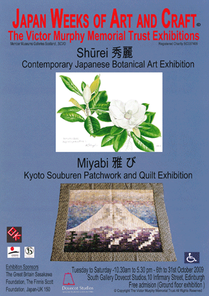 イギリスのエディンバラで30日まで開催中の、日本人植物画家24名の作品展に、僕も参加させていただいています。「オープニングに是非行って来たら・・・」と文子さんに強くすすめられたのでしたが、スケジュールの都合がつかず諦めました。 20日にカタログとポスターが届きましたが、なんと!ポスターに僕のタイサンボクの絵が採用されていました。絵の仲間の齋藤憲治さんが「むこうではマグノリアが人気が高いですから是非描いてください」と、自宅の庭のタイサンボクを切って届けてくださったのを描いた絵です。