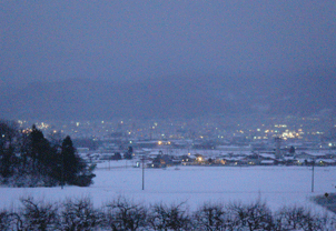 工房から眺める山形市街地の光がクリスマスのイルミネーションのように見えます。工房の中に、牧野香里さんのバルーンアートのトナカイさんとウサギさんを飾らせていただいています。とっても可愛いと評判です!!!