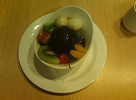 疲れなおしに中2階にあるレストランで美味しいティータイム・・・(餡蜜、美味しそうだべ)。