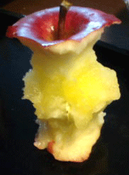 樹木医の西村幸一氏によると、リンゴの甘い部分は上側(軸がついている側)の外側(果皮に近いところ)だそうです。ふじリンゴは蜜が入った頃が美味しいのだそうですが、蜜(ソルビトールという物質)そのものはまわりの白い部分より甘くないそうです。(もったいないようですが、僕も蜜の部分を食べ残しています)