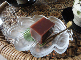 前回の花の時はプリン、今日は水羊羹がお茶うけでした。もちろん奥様の手作りです。