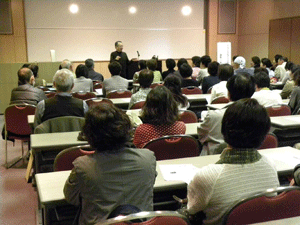 会期中に行われる行事のひとつとして、僕の講話と文子さんの実技指導を担当させていただいてきました。僕の講話のタイトルは「ボタニカルアートの世界へようこそ」。太田洋愛先生との出会いや太田洋愛先生語録などを約90名の皆さん方にお話しました。聴衆の中におられた「新宿区立戸山図書館」の大城館長さんの美しい笑顔に力づけられながらの、笑いあり涙ありの楽しい1時間でした。いま新宿区立戸山図書館では先生と僕たちの作品を展示し「師弟展」を開いてくださっています。お近くを通られたらぜひお立ち寄りください・・・