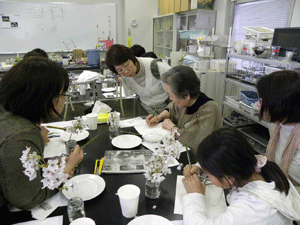 文子さんは31名の皆さん方に、桜の花の描き方の実技指導でした。ほとんどの方が初心者でしたが、皆さん非常に興味深くボタニカルアートを体験して帰られました。