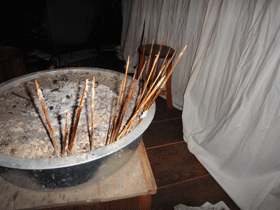 夕ご飯のおかずは、アイコやシドケ、コシアブラの天ぷらなど山菜料理。採りたての山菜料理は美味しかったです。ところで、写真の「串」には何がささっていたでしょうか。